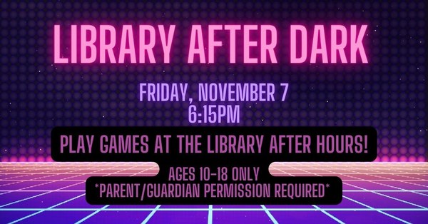 Join us at the library after closing and play fun games such as hide n seek, sardines, tug o' war and others in the dark!